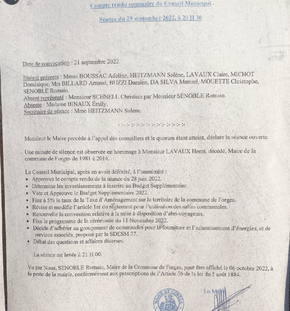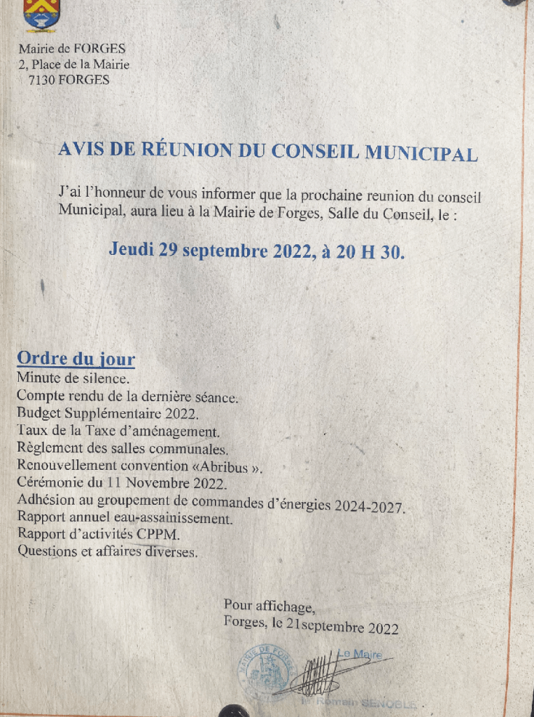 Le prochain article traitera du compte-rendu du dernier conseil municipal forgeois en date.