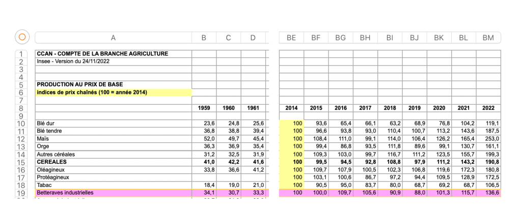 Bien que n’étant pas grand économiste, je trouve néanmoins que l’indice de prix chaînés de nos très chères betteraves ne se porte pas si mal que ça. Il n’a même jamais été aussi haut depuis 2014, année de référence…