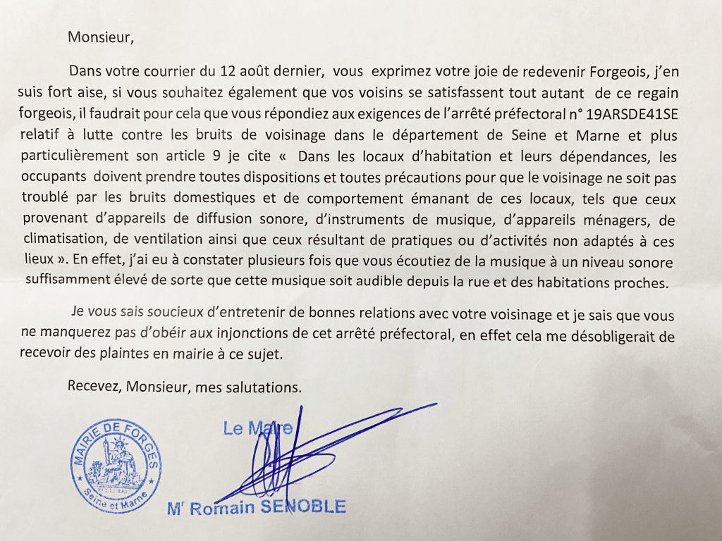 Chose promise, chose due, le rappel, voire la menace émanant de mon nouvel édile.